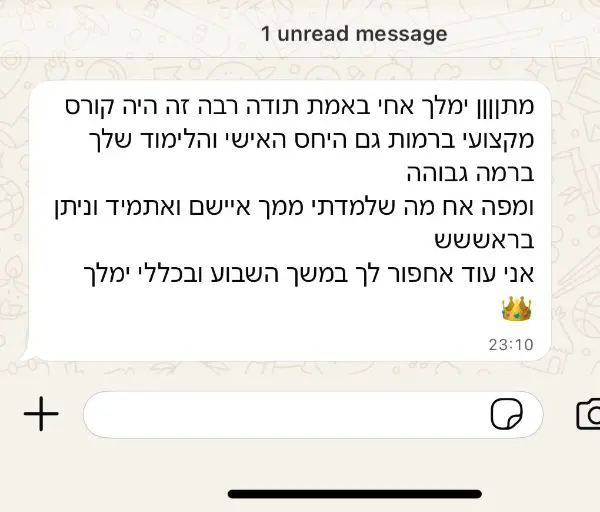 המטרה היא לא להשאיר את התלמיד לבד אחרי הקורס, אלא לתת כלים, כיוון וביטחון גם בהמשך הדרך.