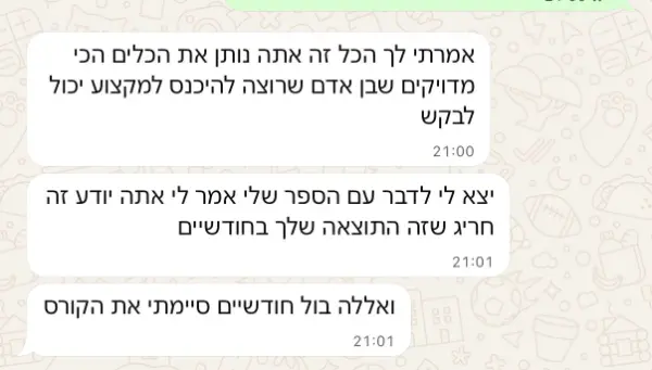 זה מסלול למי שרוצה להשקיע בלמידה, לבנות מקצוע ולהתקדם בצורה רצינית.